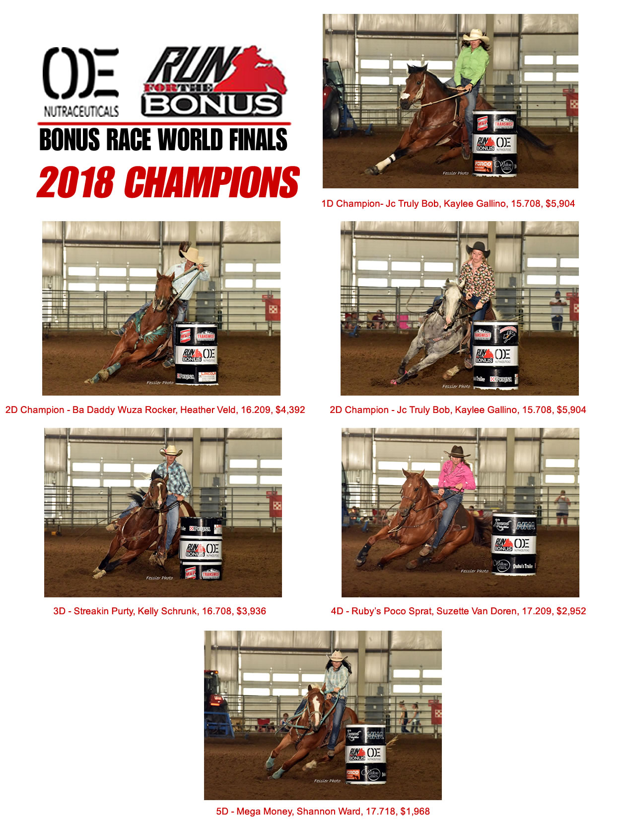 2025 BONUS RACE WORLD FINALS BARREL RACING RESULTS