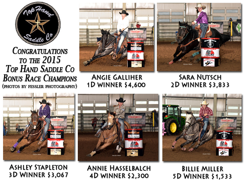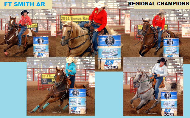 2014 REGIONAL CHAMPS Congratulations to Julie Burnett (Julie Burnett (Bossy N Perky) from Vilona AR) winning a total of $2140 (in addition she received a trophy Run For The Bonus fire pit for her 1d open jackpot win, a Legend trophy belt buckle for her Sun 2D win and a cruise for two PLUS $500 spending cash) Congrats Julie!